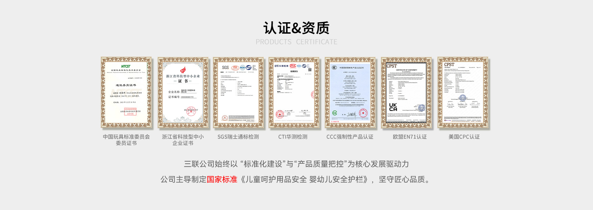 ? ? ? ? 近日,國(guó)家市場(chǎng)監(jiān)督管理總局、國(guó)家標(biāo)準(zhǔn)化管理委員會(huì)發(fā)布中華人民共和國(guó)國(guó)家標(biāo)準(zhǔn)公告(2025 年第 24 號(hào)),由瑞安市三聯(lián)塑料有限公司作為第四起草單位、公司產(chǎn)品經(jīng)理池俊偉擔(dān)任起草人的國(guó)家標(biāo)準(zhǔn)《兒童呵護(hù)用品安全 嬰幼兒安全護(hù)欄》(GB/T 46508-2025)正式獲批發(fā)布,并將于 2026 年 11 月 1 日起全面實(shí)施。這一標(biāo)準(zhǔn)的出臺(tái),不僅填補(bǔ)了當(dāng)前嬰幼兒圍欄類目缺乏統(tǒng)